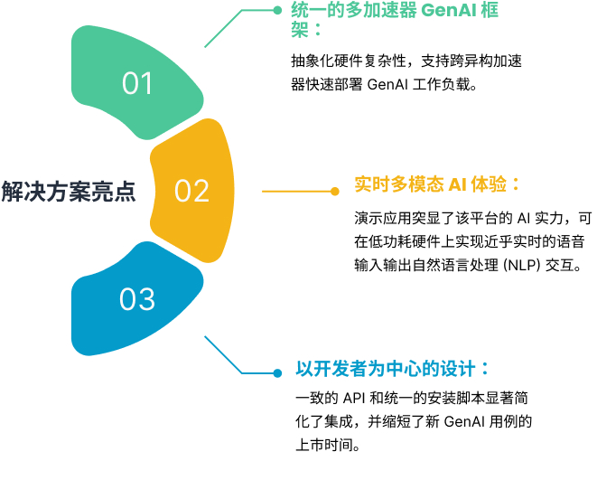 挑战在于,如何协调跨不同 SoC 和硬件后端的 AI 工作负载,而每个后端都需要各自的运行时堆栈、驱动程序配置和优化策略。客户需要一种可扩展的、与硬件无关的方法,该方法能够: